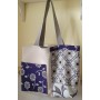 Borsa realizzata in tessuto broccato floreale blu con manici in bamboo