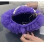 Deliziosa pochette in tulle effetto nuvoletta, con manico in perle.