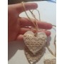 Cuoricino realizzato con stoffa ed imbottitura in cotone, corda e decorazioni 100% lino. Può essere usato come portachiavi o come piccola decorazione da appendere. Dà un tocco di dolcezza ed eleganza.