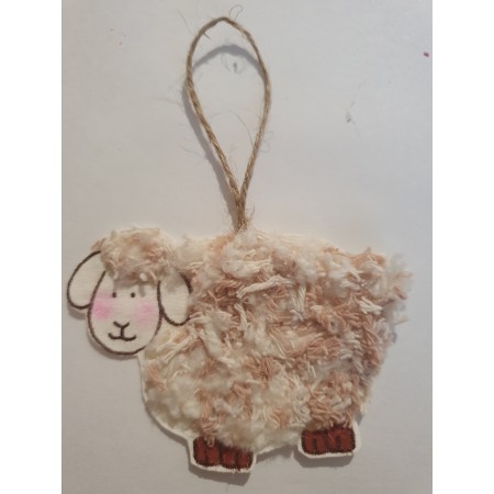 Pecorella panna con orecchie rosa in tessuto con cordino per appenderla